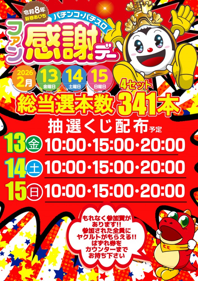 2/13(金)~2/15(日)ファン感謝デー開催!!