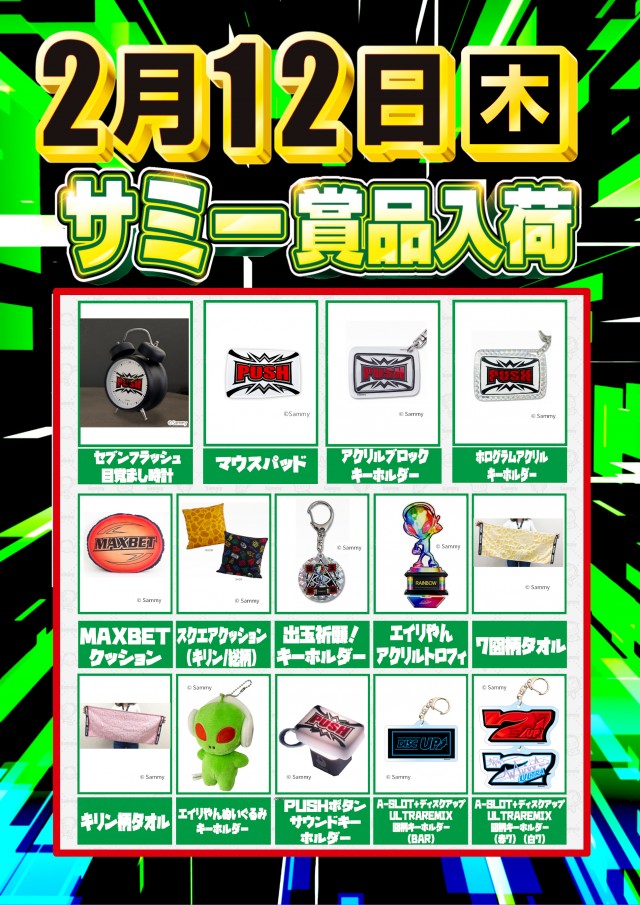 2月12日(木)朝9時開店 お取り寄せ賞品入荷