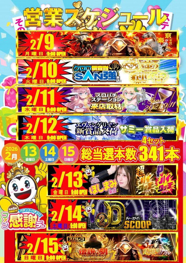 2月15日(日)朝9時開店 ファン感謝デー最終日