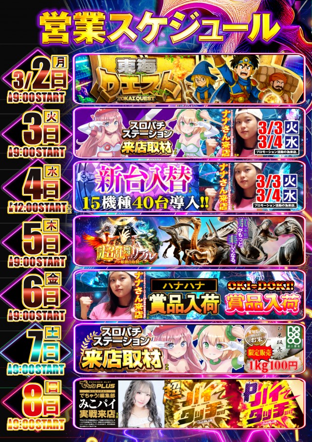 3月4日(水)新台入替12時OPEN!(予定)