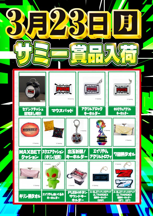 3月23日(月)朝9時開店 お取り寄せ賞品入荷