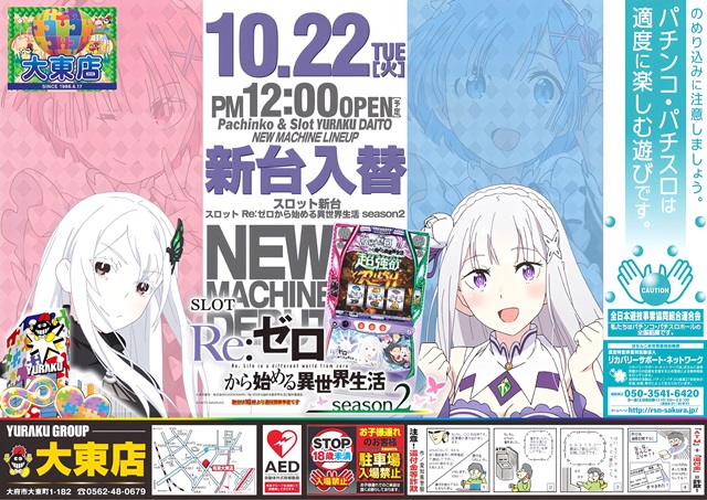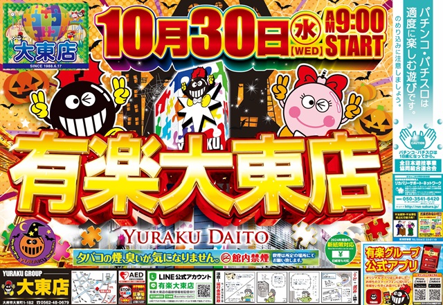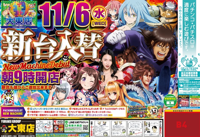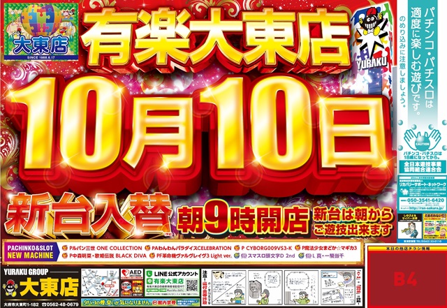 【有楽大東店】明日新台入替 朝9時開店!