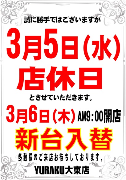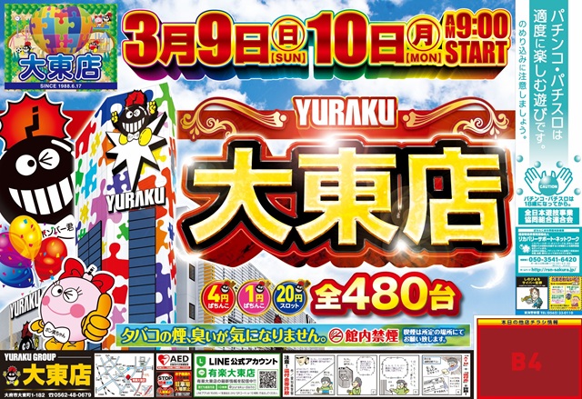 【有楽大東店】チラシ折込日朝9時オープン!!