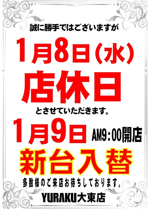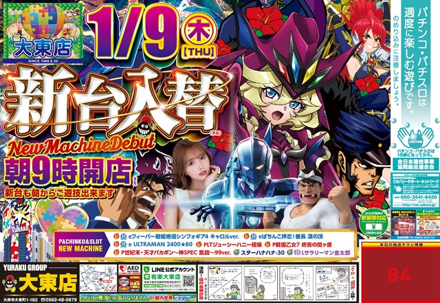 【有楽大東店】明日新台入替 朝9時開店!