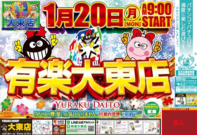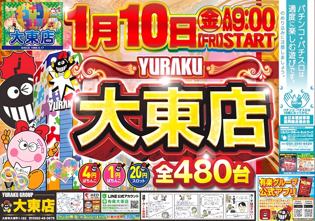 【有楽大東店】明日は有楽グループ全店 朝9時オープン!!