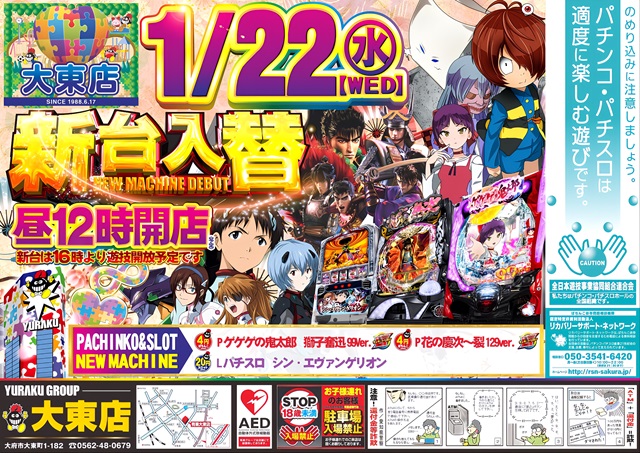 【有楽大東店】新台入替昼12時開店!