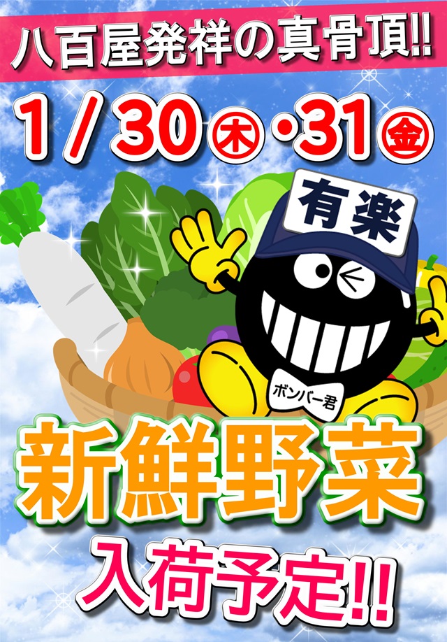 有楽大東店情報 明日、新鮮野菜入荷します!