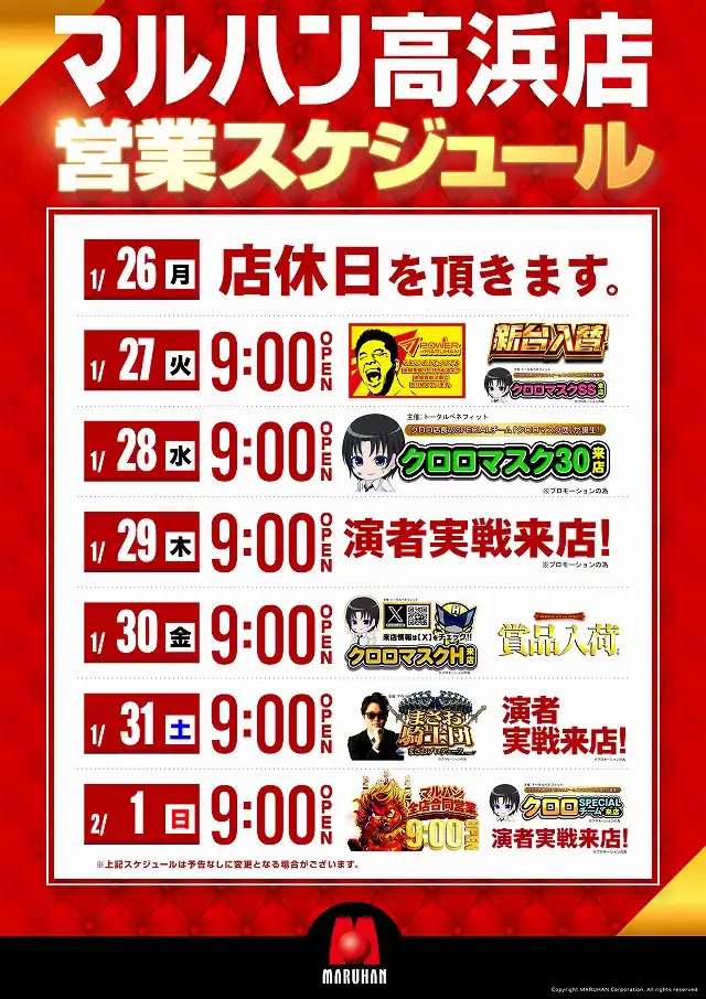 27日「土」!愛知・岐阜マルハン全店!朝9時オープン😆😆😆
