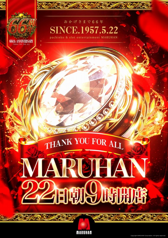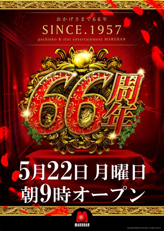 5月22日「月」!おかげさまでマルハン66周年!朝9時開店!
