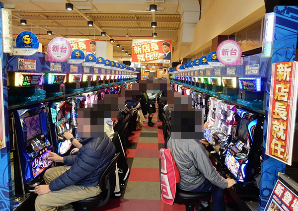 また、1円パチンコの海物語シリーズも人気があり、明るい雰囲気に包まれていた。
