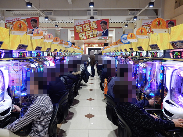 4円パチンコをみると、海物語シリーズが大盛況。ポテンシャルを発揮できているためか、プレイヤーたちの表情はイキイキとしていた。