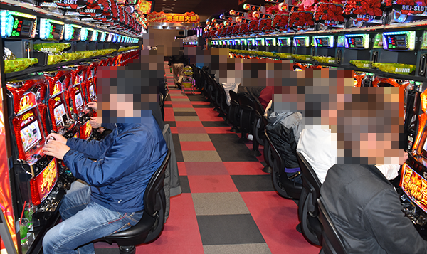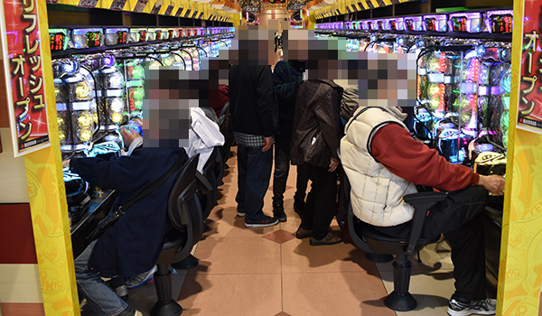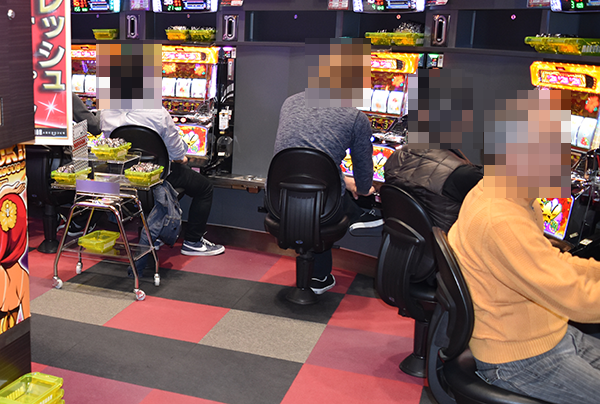 14時をまわった頃の4円パチンコをみると、「CRスーパー海物語IN沖縄4」が盛況。シマ内に広がる鮮やかな光景は、満足度の高さをあらわしているようであった。