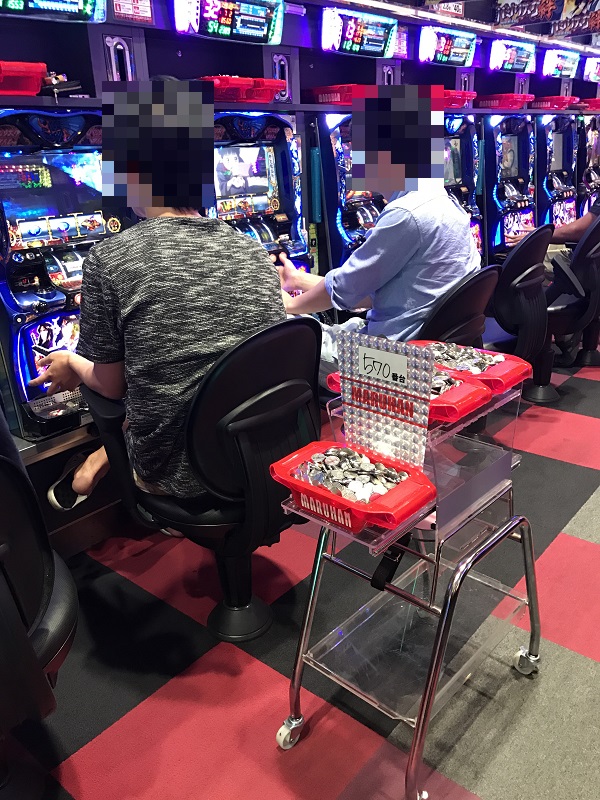 開店時間を向かえ、多くのプレイヤーが向かったのは21.27円スロットコーナー。「バジリスク~甲賀忍法帖~絆」「押忍!番長3」といった定番機種や、「沖ドキ!-30」「ニューキングハナハナ-30」のような30φコーナーに人気が集中した。
