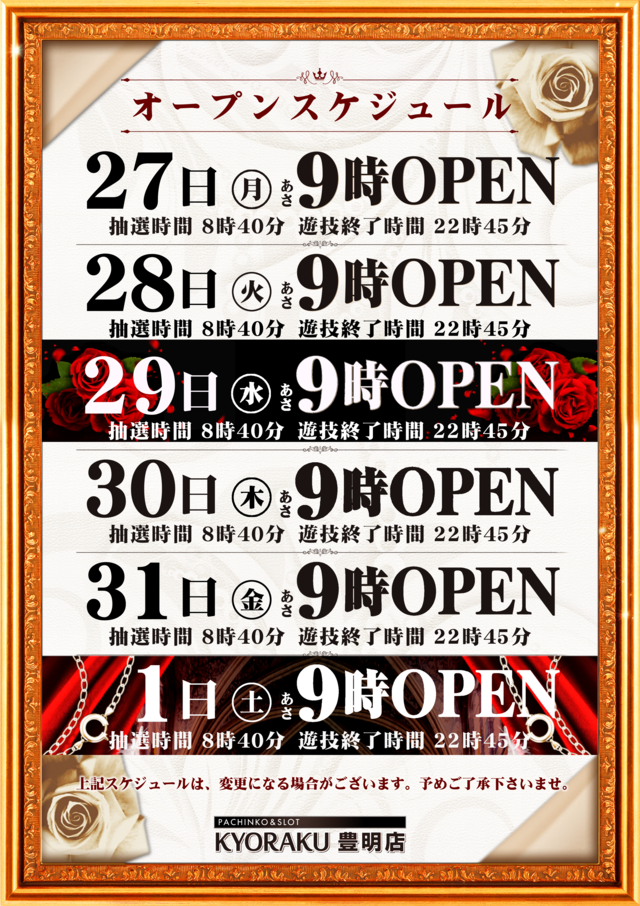 10月23日【木】最新機種導入済み!!朝9時開店!!