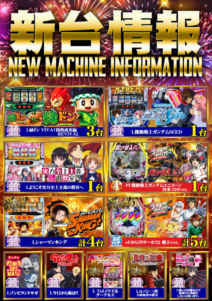 9日【金】全店朝9時開店!最新台導入済!お取り寄せ賞品入荷!