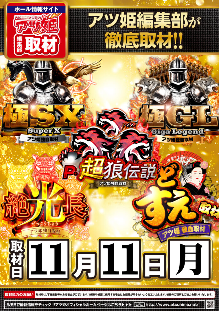 11月9日【土】全店朝9時開店!!抽選時間は8:30です!!