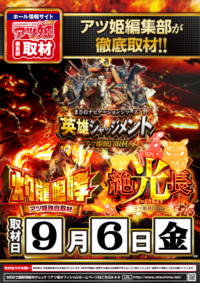 9月5日(木)新台導入完了!朝9時開店!新台も朝から遊べます