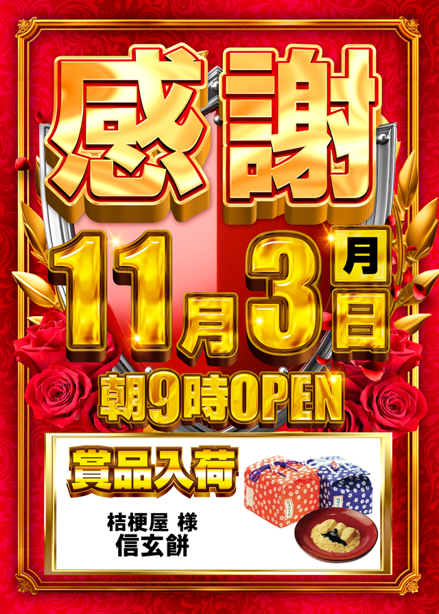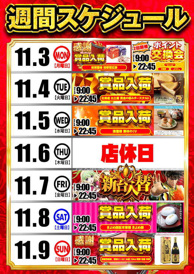 11月4日【火】☆賞品入荷☆朝9時オープン