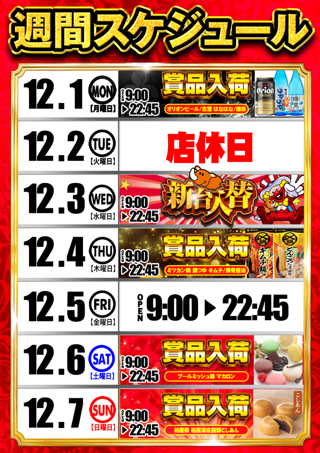 11月23日(日)☆取材班来店&賞品入荷☆あさ9時オープン!