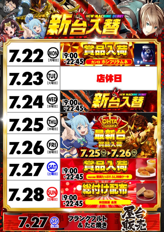 7月28日(日)☆総付景品配布☆あさ9時オープン!!