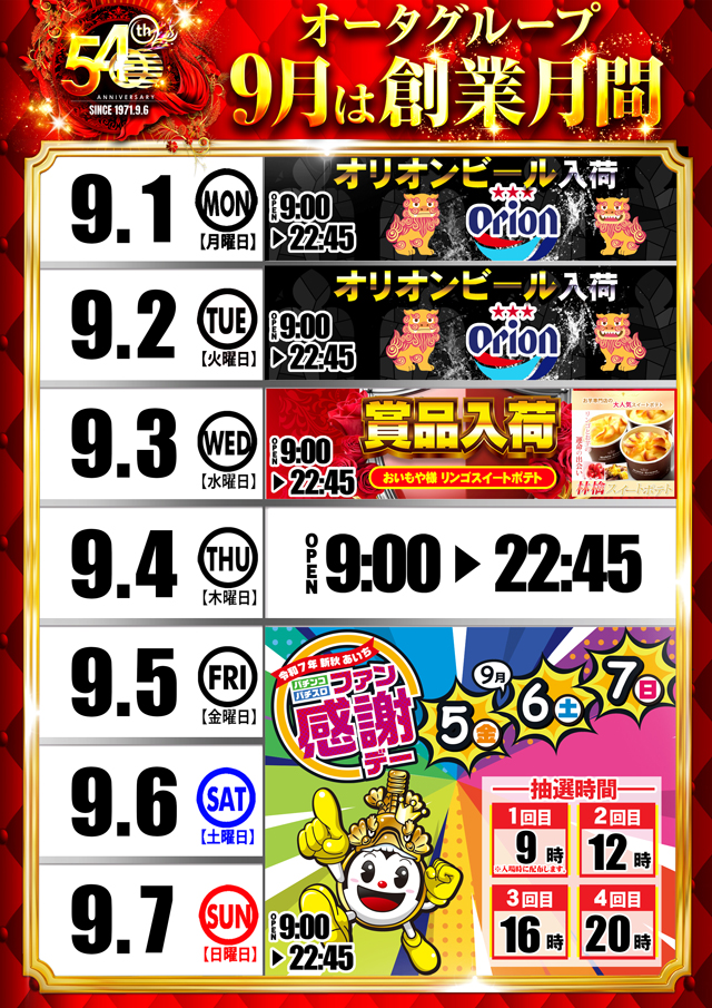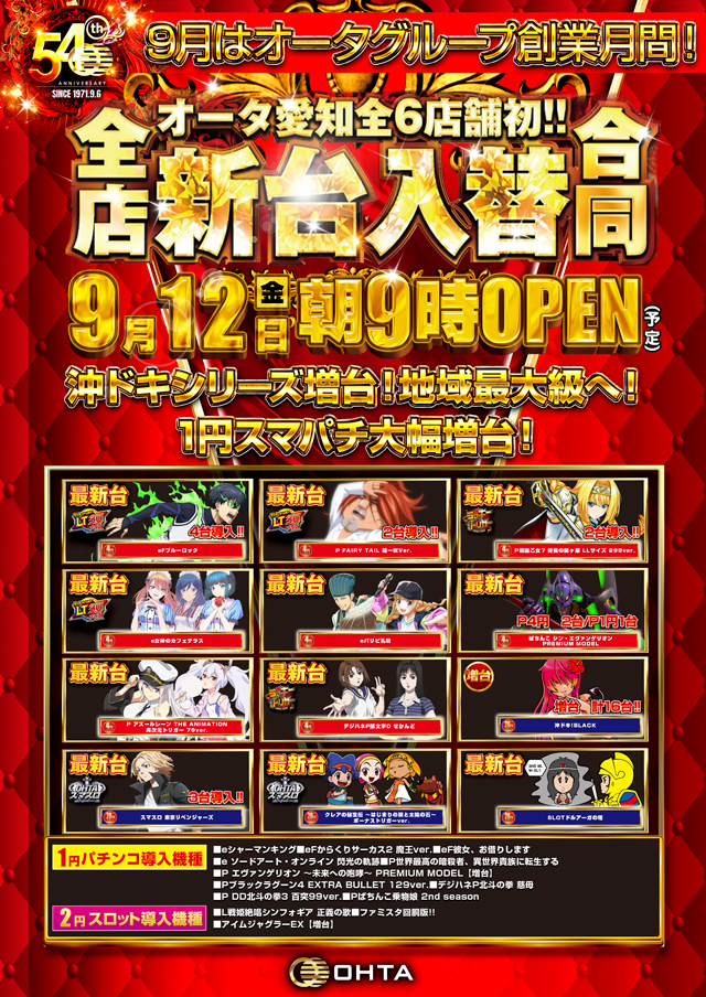 【新台入替】愛知初6店舗合同☆オータ創業54周年