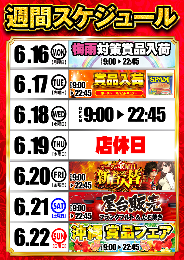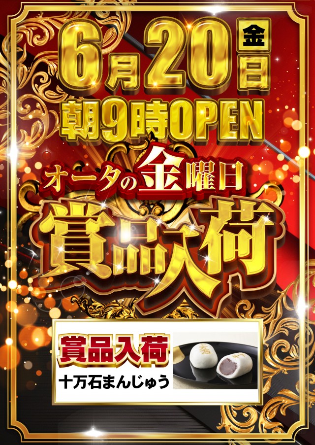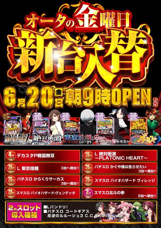 6月20日(金)☆新台入替&賞品入荷☆朝9時オープン!!