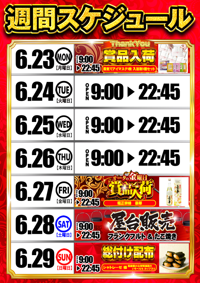 6月28日(土)☆賞品入荷&屋台販売☆あさ9時オープン!!