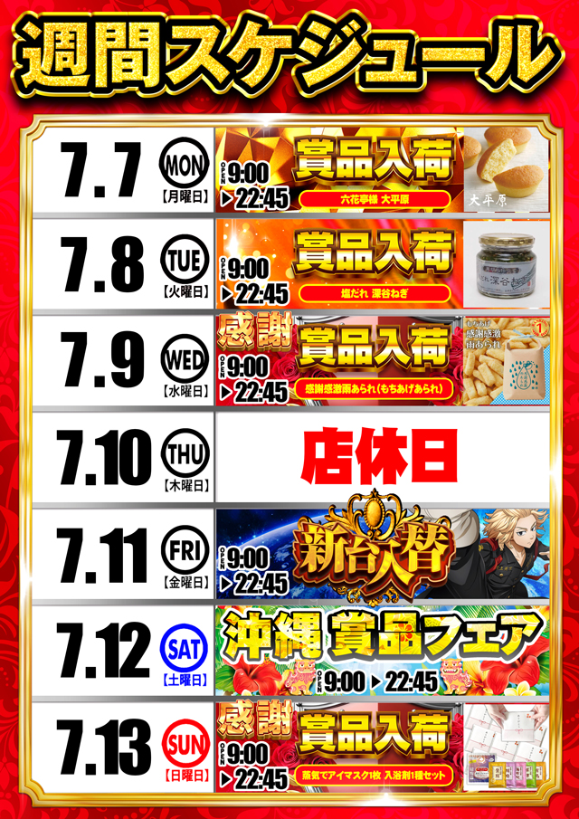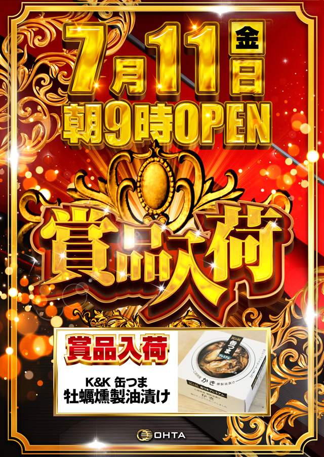 7月11日(金)☆新台入替&賞品入荷☆あさ9時オープン!!