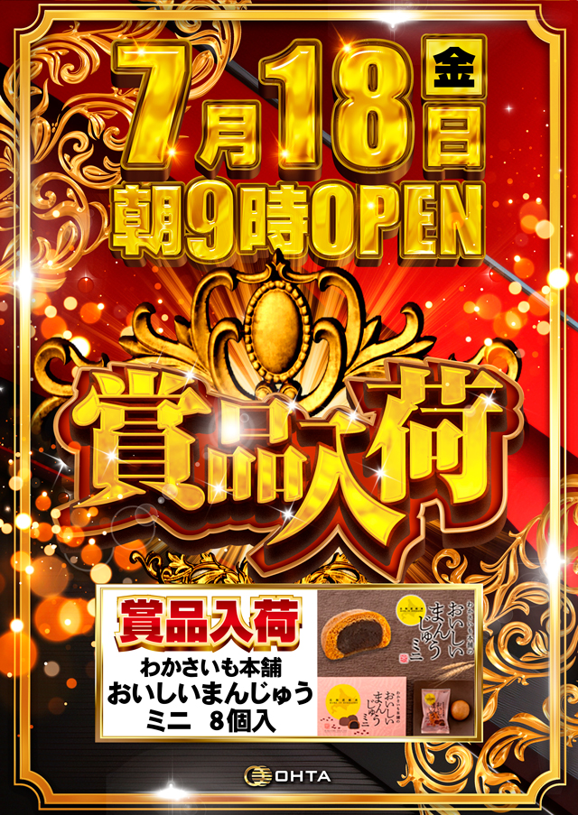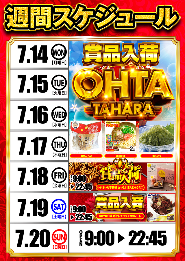 7月19日(土)☆賞品入荷☆あさ9時オープン!!