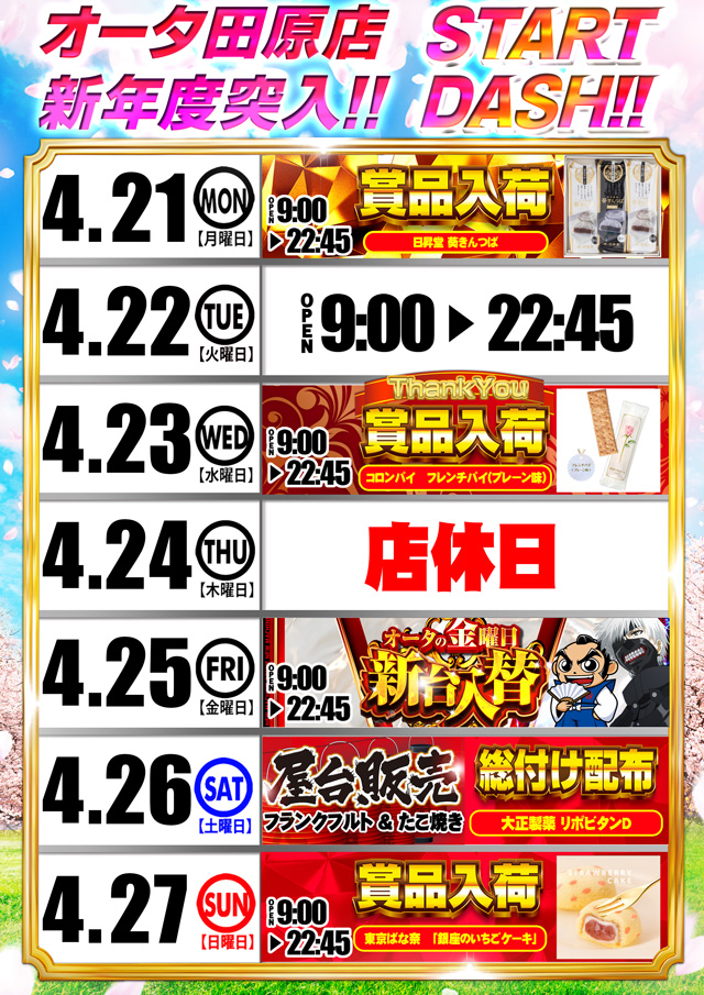 4月21日(月)☆賞品入荷☆あさ9時オープン!!