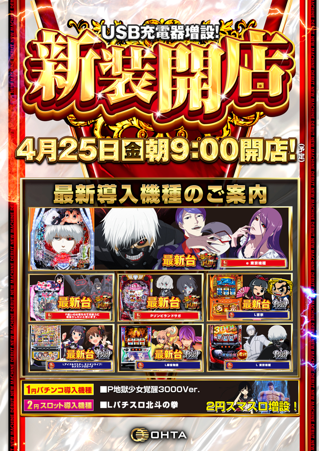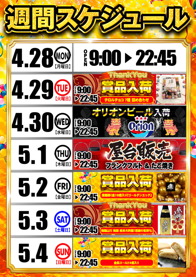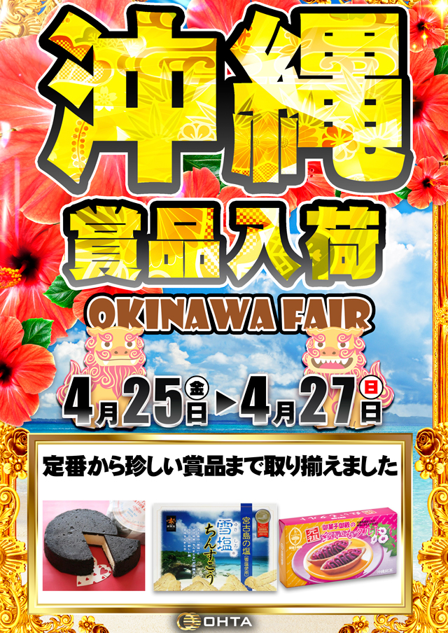 4月25日(金)☆新台入替&沖縄賞品入荷☆あさ9時オープン!