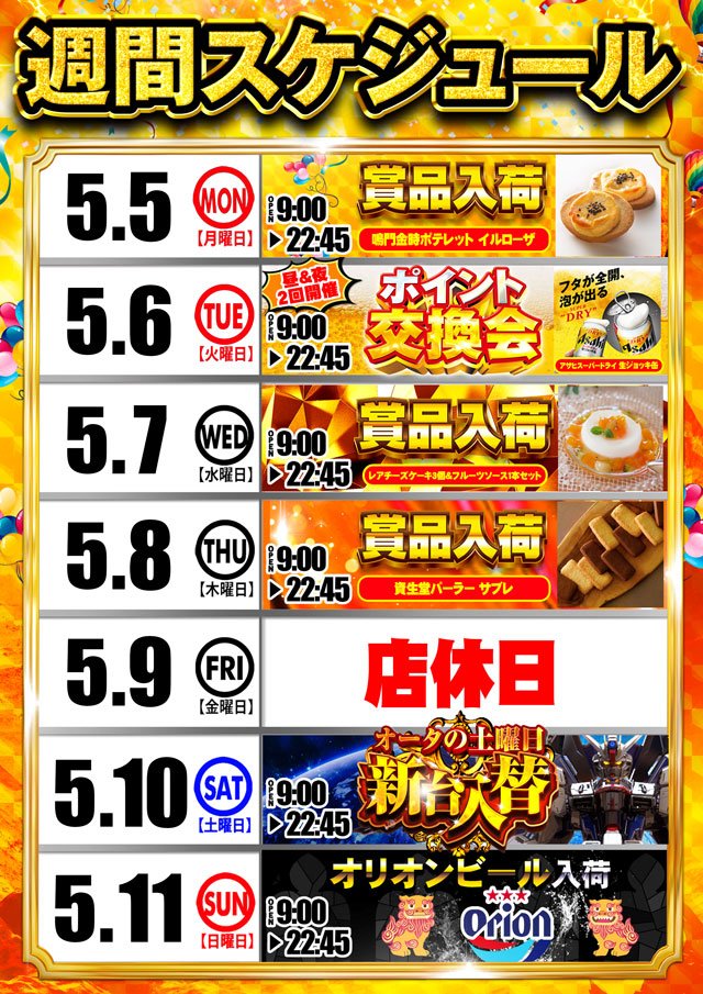 5月2日(金)☆GW賞品入荷☆朝9時オープン!!