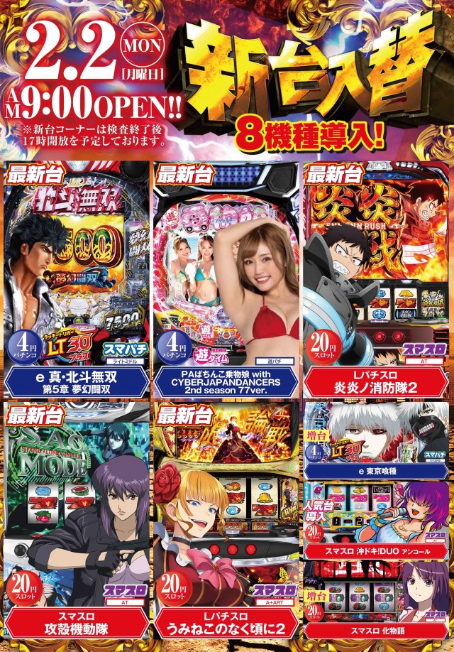 2月2日新台入替(新台は17時開放予定)