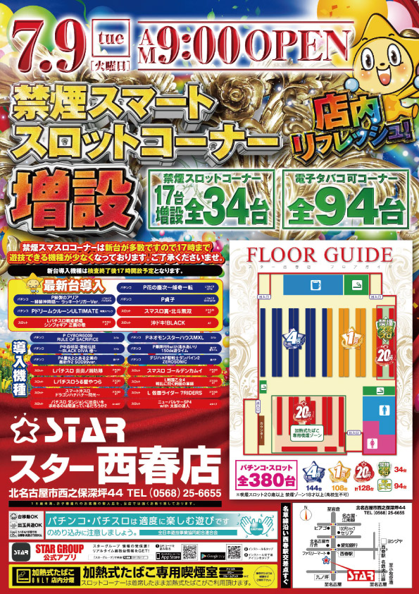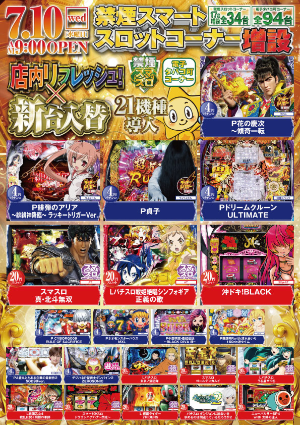 禁煙スマスロ&1パチ増設♪♪新台21機種!朝9時OPEN!