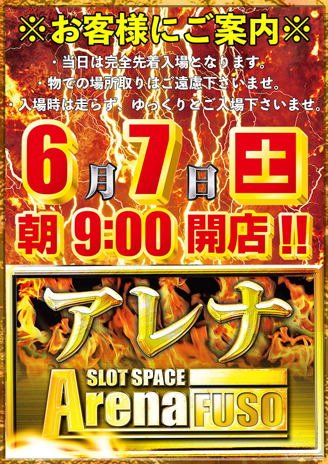 ☆スロ専アレナは9:00~22:50まで営業中☆