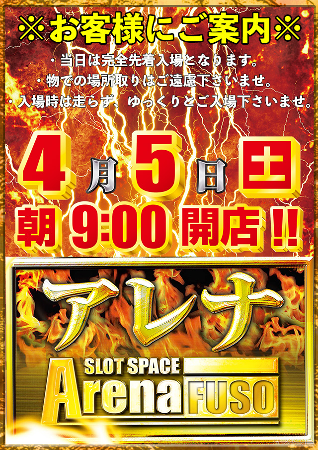 ☆スロ専アレナは9:00~22:50まで営業中☆