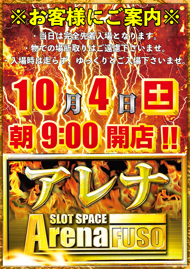 ☆スロ専アレナは9:00~22:50まで営業中☆