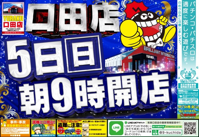 9日★有楽口田店★新台初日★朝9時開店!!