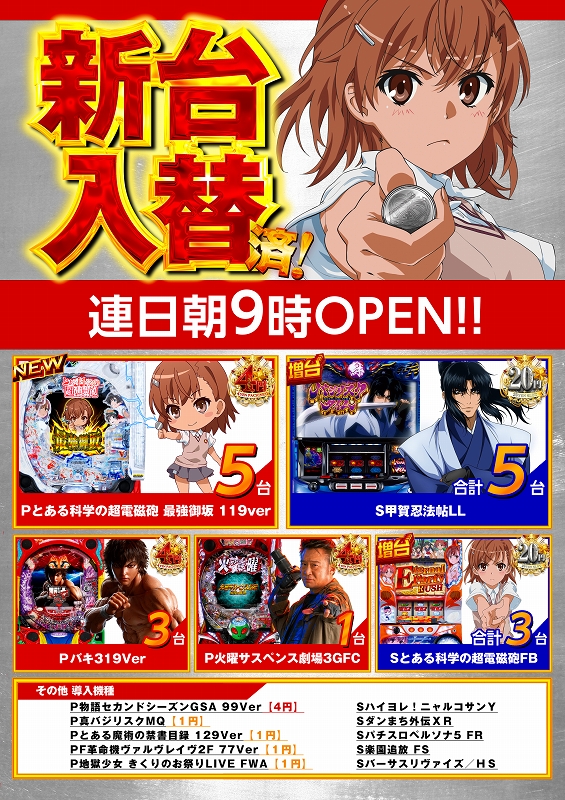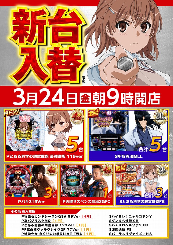 🌟3月24日【金】新台入替🌟朝9時OPEN🌟