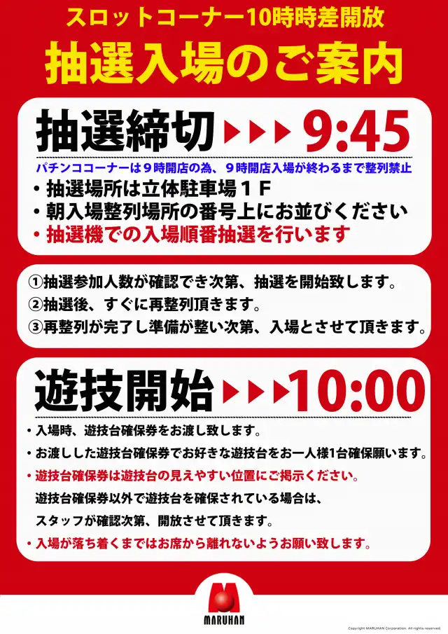 朝8:30までにお集まりのお客様を対象に抽選入場とさせて頂きます。※8:30以降にお越しのお客様は一般入場とさせて頂きます。 |
