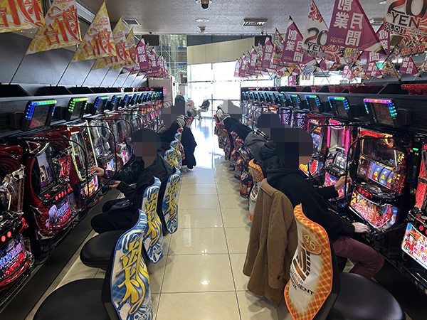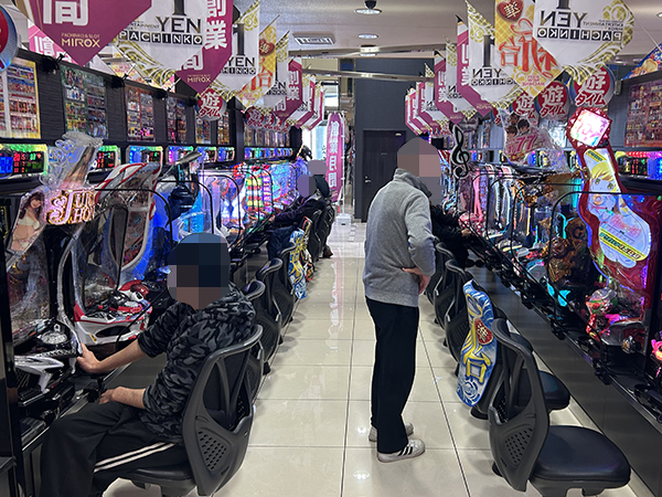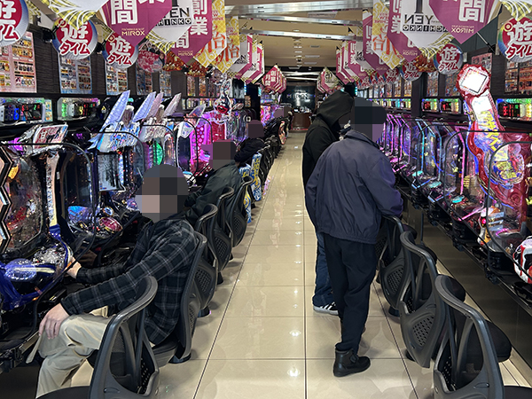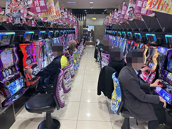 100円/178玉・200円/89玉パチンコの支持も厚い。遊技を楽しむプレイヤーたちの姿が印象に残っている。