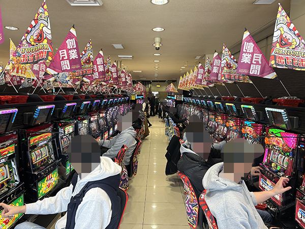 1000円/178枚パチスロは全体的に高稼働。空き台が見当たらないほどの盛況ぶりだった。