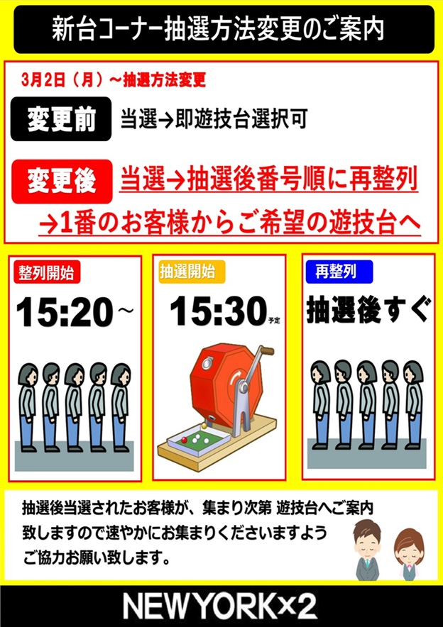 🎀本日は新台入替予定です🎀抽選方法が変わります👇