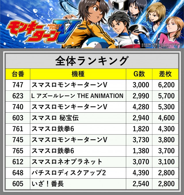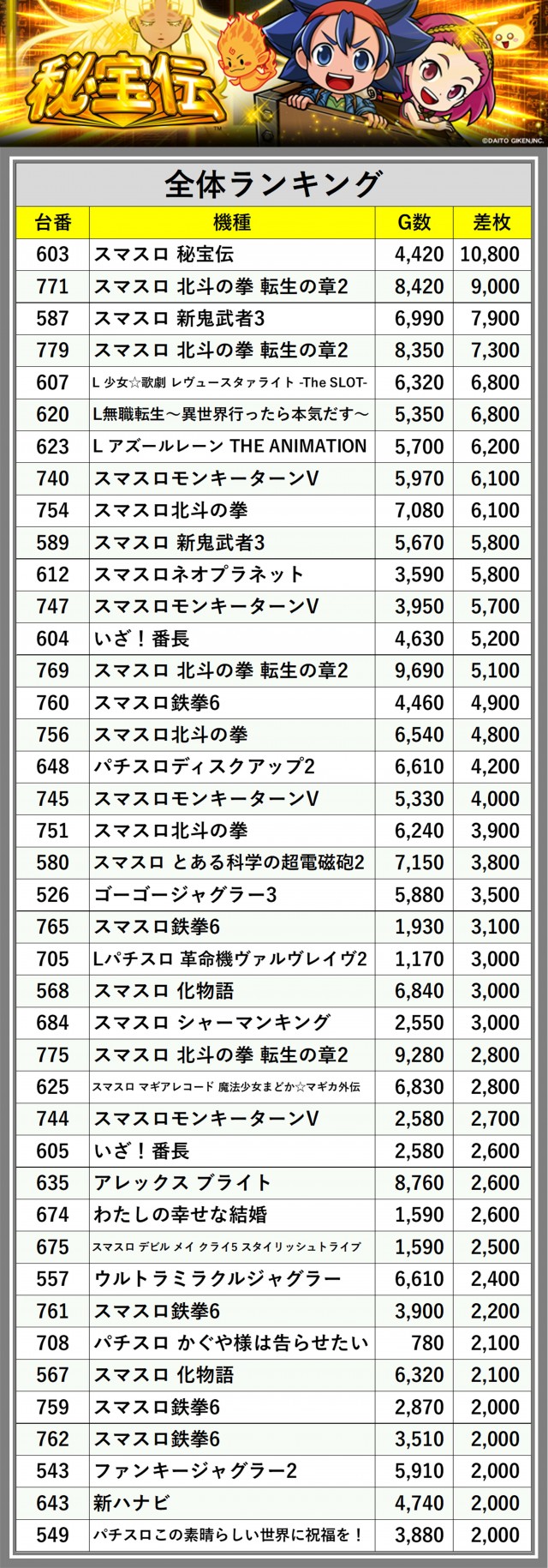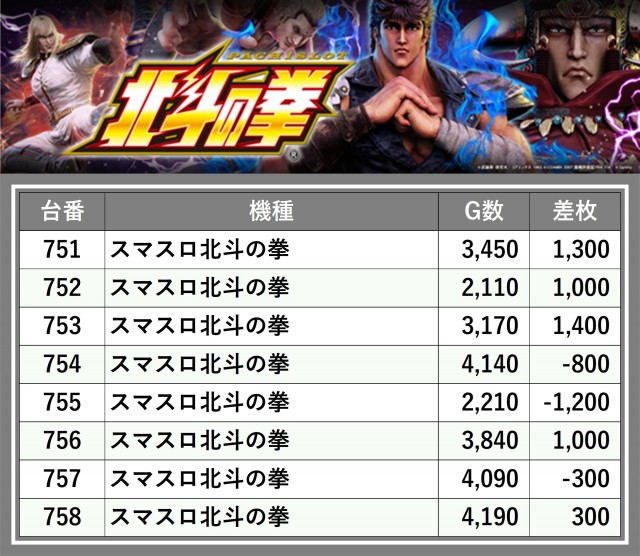 厳選された取材対象機種をはじめ、その他スロット全体から好記録が飛び出した!プレイヤーが楽しんだ1日を下記データにて振り返ってみて欲しい。