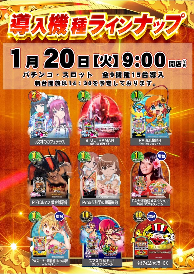 本日1月20日(火)新台入替(予定)
