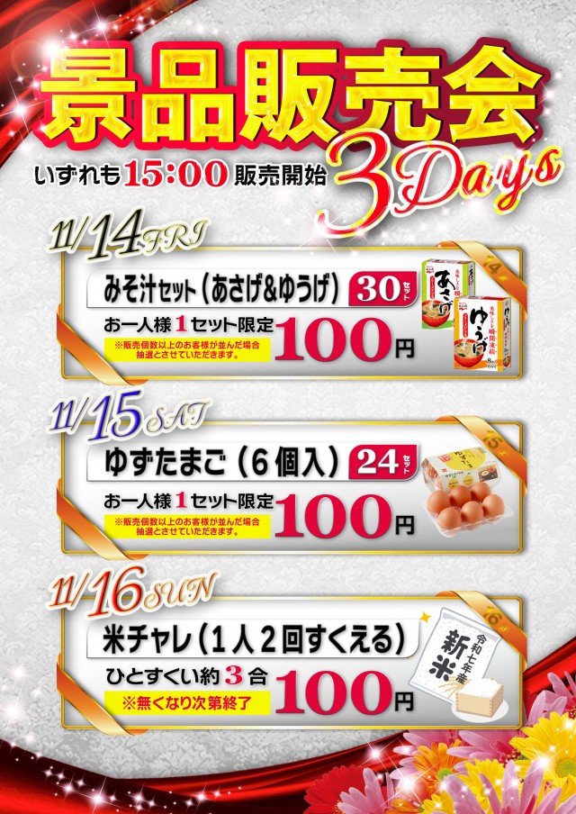 今週末は景品販売会も開催!