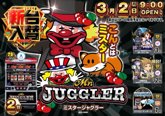本日3月2日(月)新台入替(予定)!