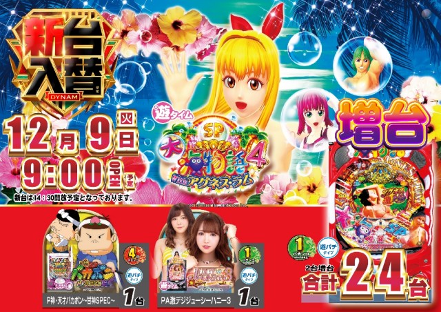 本日12月9日(火)新台入替(予定)!