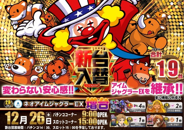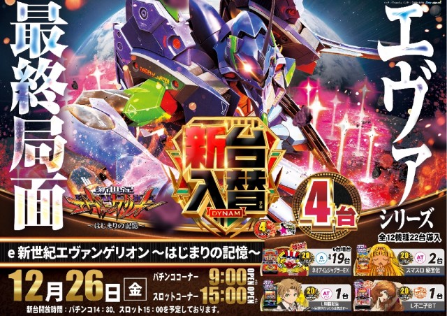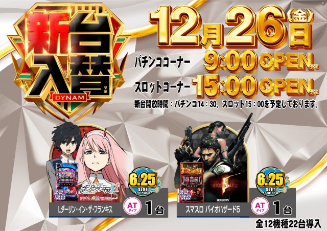 本日12月26日(金)新台入替(予定)!