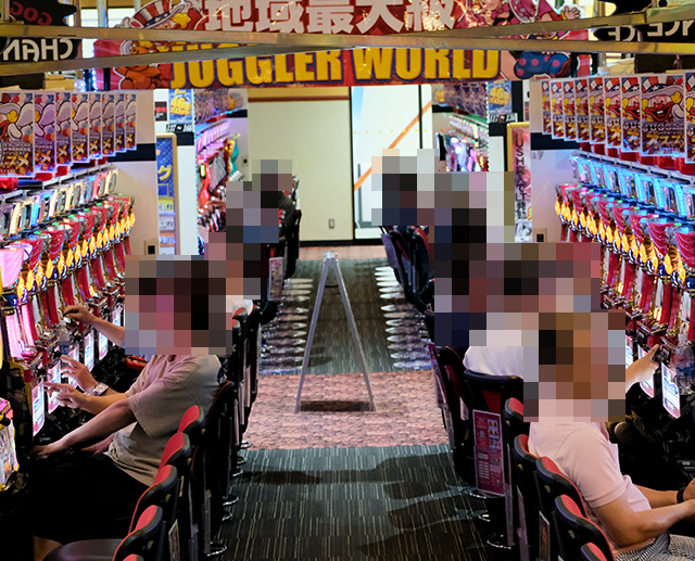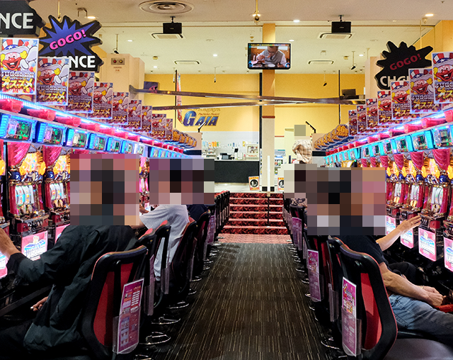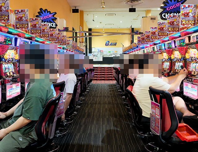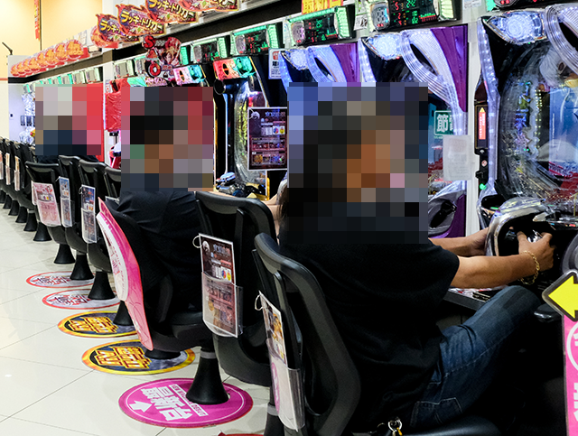 プレイヤーたちは持ち玉を使い、楽しそうに遊技中。